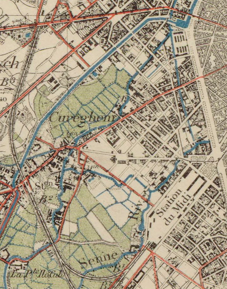 D’abord hameau rural et marécageux traversé par les bras de la Senne, Cureghem s’est progressivement transformé avec l’arrivée du canal, du chemin de fer, des abattoirs, des industries textiles, artisanales et alimentaires. Sa position stratégique, à la fois proche du centre de Bruxelles et longtemps enclavée, en a fait un lieu convoité, mais aussi un espace d’installation pour les populations ouvrières et immigrées successives.